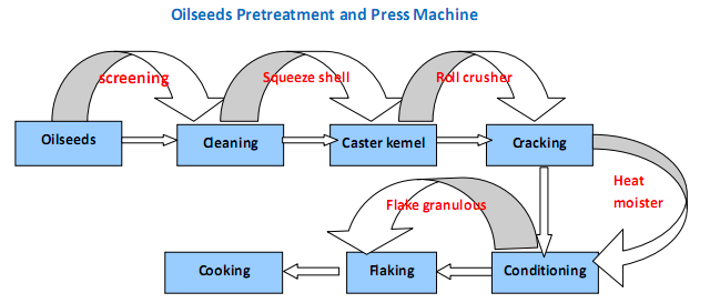 油種子預處理及壓延工藝流程圖: