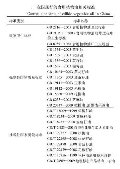 企鵝糧油機械關注油脂行業資訊:《食用植物油》國內標準出臺日期難定。我國現行的食用油標準看下表: